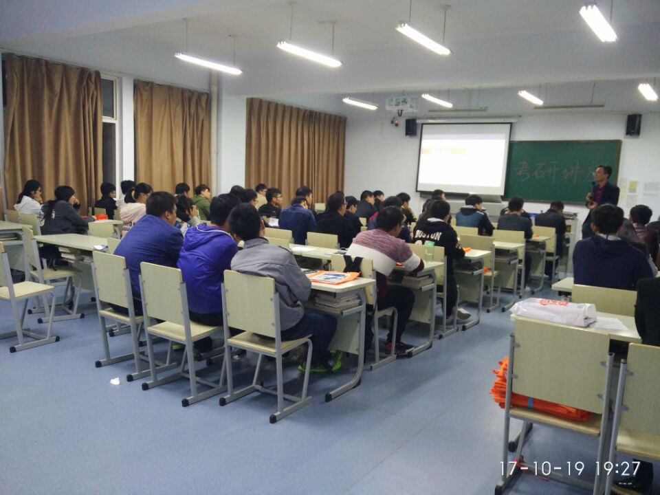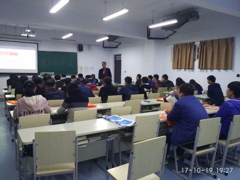 10月19日晚,在拓新楼1203室,河南理工大学鹤壁工程技术学院举办考研动员大会,启航教育考研辅导老师王博应邀为同学们做考研讲座。学院有考研意向的同学和2015级部分学生聆听了讲座。
