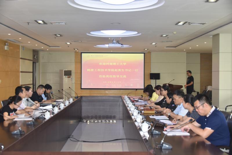 6月19日上午,河南理工大学鹤壁工程技术学院党委书记赵贵生,党委副书记、副院长谷海红及教学科研办公室、综合办公室、团委等相关负责人一行5人赴郑州工程技术学院参观访问。郑州工程技术学院副校长李欣,校长助理王文武及人事处、科研处、党委学生工作部(学生处)、团委、校办、教务处、实验实训与校企合作管理中心等部门相关负责人接待并参与交流。
