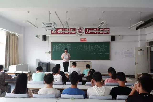 首先,团委学生会各部门部长总结汇报换届后的工作情况,指出存在的问题,提出相应的解决方案,并对近期工作进行具体的安排和部署。
