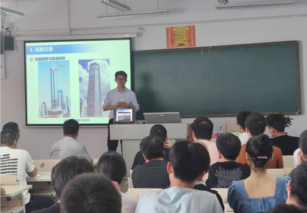 董锐博士从结构风工程、海峡两岸建筑风荷载标准、现行规范比较等方面进行介绍,分析了实际工程案例。他以自身攻读硕博为例,详细讲解考研复习的具体流程、院校的选择及专业方向的选择。在互动环节,针对学生关注的初试准备阶段的复习方法、时间安排及复试阶段注意事项等方面,他提出建议:一是合理安排暑期这一关键时期,科学制定计划,并按照计划认真复习;二是处理好考研与专业课学习,学好专业课为复试做好充分的准备;三是根据自己的专业特长、兴趣爱好等实际情况选择报考学校;四是把握好差额复试,熟悉面试流程;五是要多关注未来土木类行业发展趋势,明确选择研究方向。