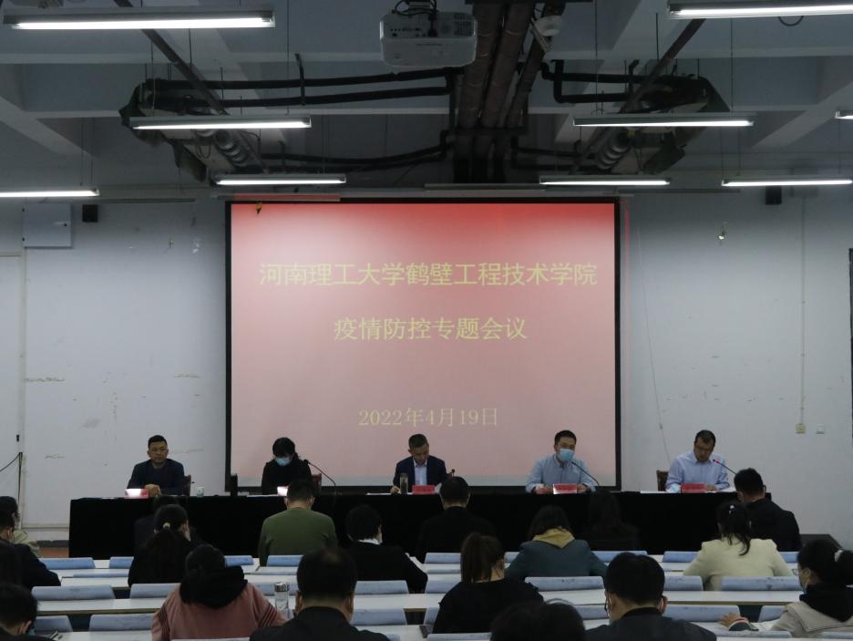4月19日下午,鹤壁工程技术学院在二楼报告厅召开疫情防控专题会议,传达学习校疫情防控工作专班会议精神和学院党委书记郑辉、院长蔡太生对疫情防控工作的要求,通报了近期师生疫情防控情况和教学、学生管理要求。常务副院长谷海红出席并讲话。会议由副院长法冠喆主持。全体教职工参加了会议。