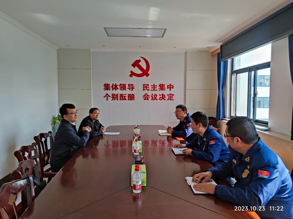 2023年10月23日上午,学院副书记齐建民同志一行三人赴鹤壁市淇滨区消防救援大队调研交流校园消防安全工作。淇滨区消防救援大队大队长李威、副大队长刘鹏飞、参谋贺坤明等领导热情接待,学校后勤安保科负责人以及相关人员参加座谈交流。