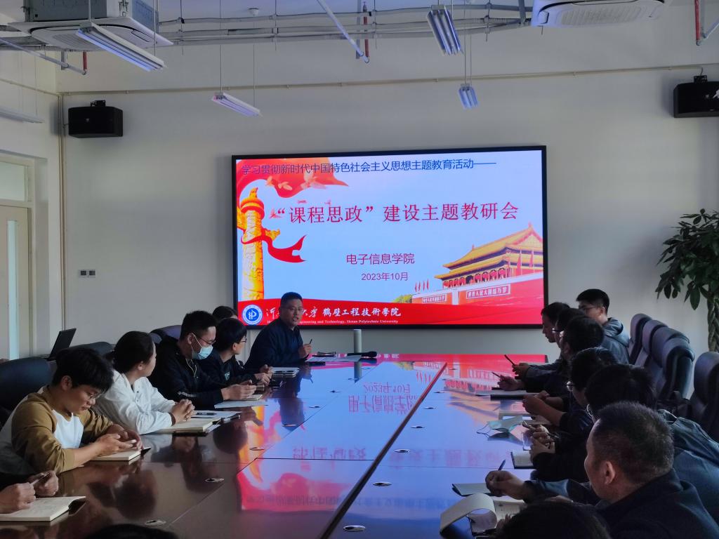 10月24日下午,电子信息学院在明德楼408会议室,召开“课程思政”主题教研活动,学院全体专兼职教师参加。此次活动由电子信息学院人工智能教研室主任刘俊杰主持。