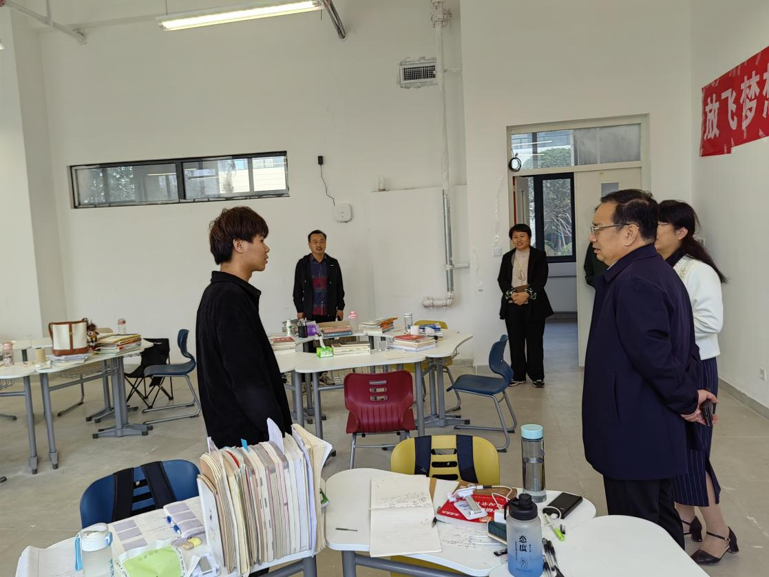 调研期间,金志广书记认真听取了各教学院系负责人的工作汇报,就各院系在党建工作、教学运行、教育教学、学生管理、师资队伍、人才培养等方面取得的成绩、存在的困难进行了全面了解和深入交流。调研中,金志广书记还实地参观、考察了各院系办公室、教研室、实训室、考研自习室等场所,与师生们亲切交流。