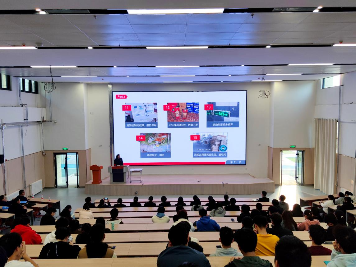 2023年11月21日下午4︰00,我校在教学楼报告厅举行“预防为主、生命至上”消防安全主题培训。学校后勤安保科负责人、学生科负责人、学生代表、宿管员代表、辅导员代表、餐厅代表、商户代表近 200 人参加本次消防安全培训。