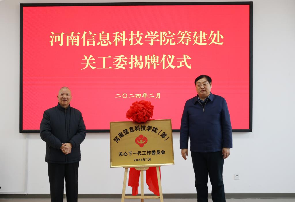 2月5日,河南信息科技学院筹建处关工委揭牌仪式举行。市委常委、组织部部长、市关工委主任、河南信息科技学院筹建处党委书记田开胜,市关工委执行主任郭润营、刘素显、张民堂,筹建处副主任常文君、金志广、吴登贺,筹建处纪委书记张素珍及副县级以上干部、二级院部负责人参加。