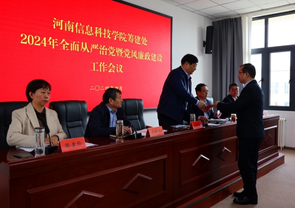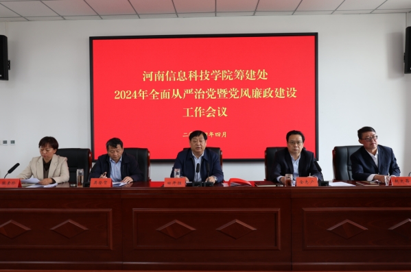 4月9日,河南信息科技学院筹建处召开了2024年全面从严治党暨党风廉政建设工作会议,全面贯彻落实二十届中央纪委三次全会、十一届省纪委四次全会、市纪委十届四次全会精神。会议由筹建处党委委员金志广主持,市纪委监委派驻市教体局纪检监察组组长赵文昌到会指导,党委书记田开胜出席会议并讲话,党委班子成员、县级干部、各二级院部党政负责人、副科级以上干部、学院各党总支(党支部)负责人及支部委员参加会议。