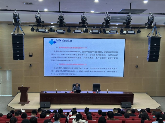 5月7日下午,学校在报告厅举办“凝心聚力,蓄势待发”教师专题培训第四讲,筹建处运行服务部副主任、工程学院副院长李天子以“科研工作对教师成长的重要意义”为题作专题讲座,承担教学任务的全体教师参加培训。