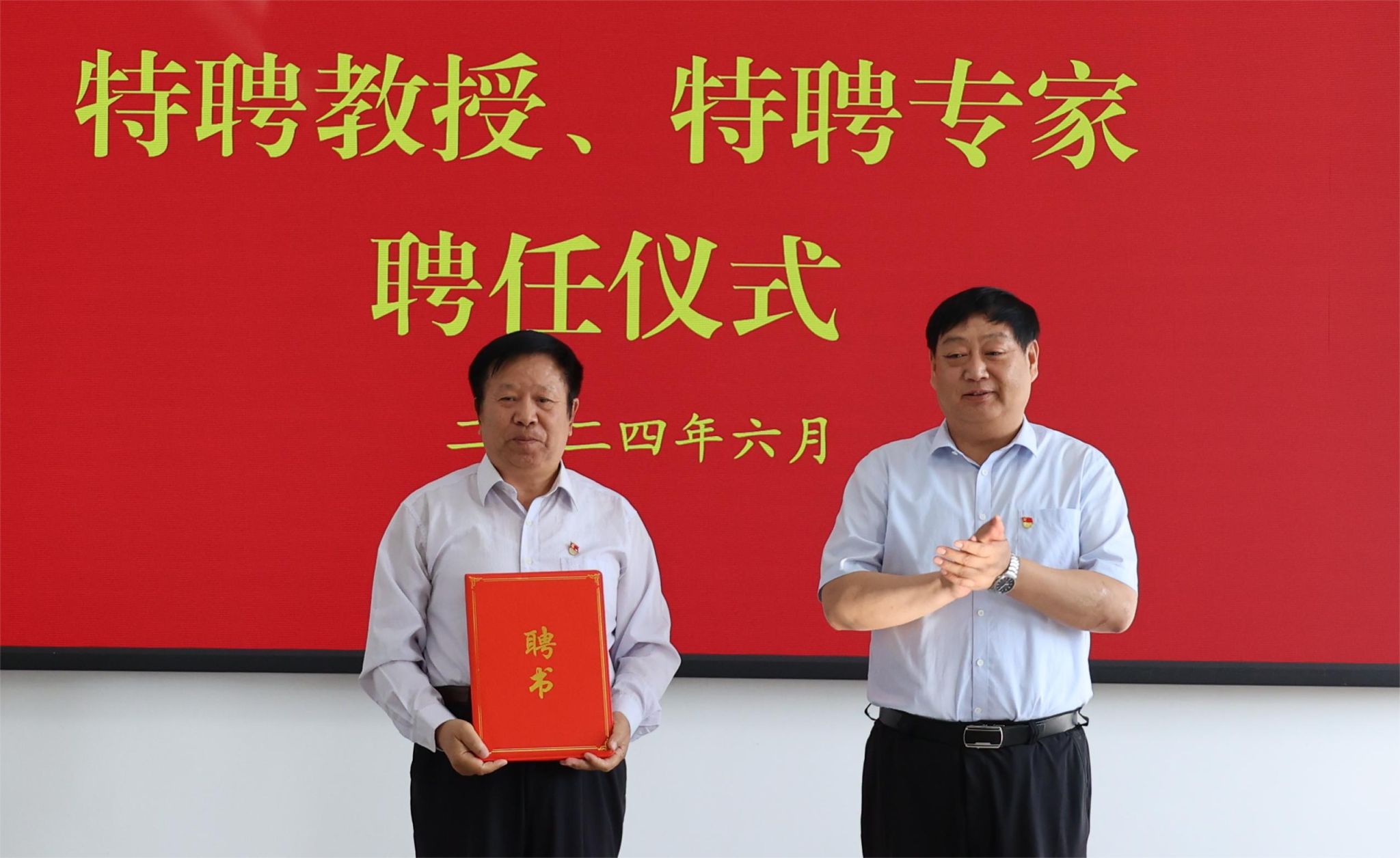 田开胜依次为受聘人员颁发《河南信息科技学院筹建处特聘教授、特聘专家》聘书,代表筹建处对各位特聘教授、特聘专家的加盟表示诚挚欢迎。