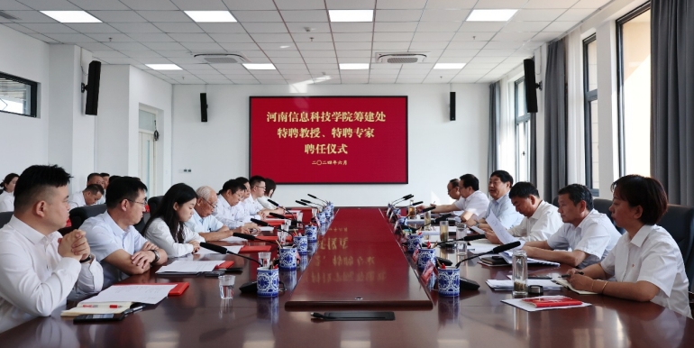 2024年6月27日上午,河南信息科技学院筹建处特聘教授、特聘专家聘任仪式在行政办公楼519会议室举行。市委常委、组织部部长、河南信息科技学院筹建处党委书记田开胜,筹建处副主任常文君、金志广、吴登贺,纪委书记张素珍及县级领导干部参加。