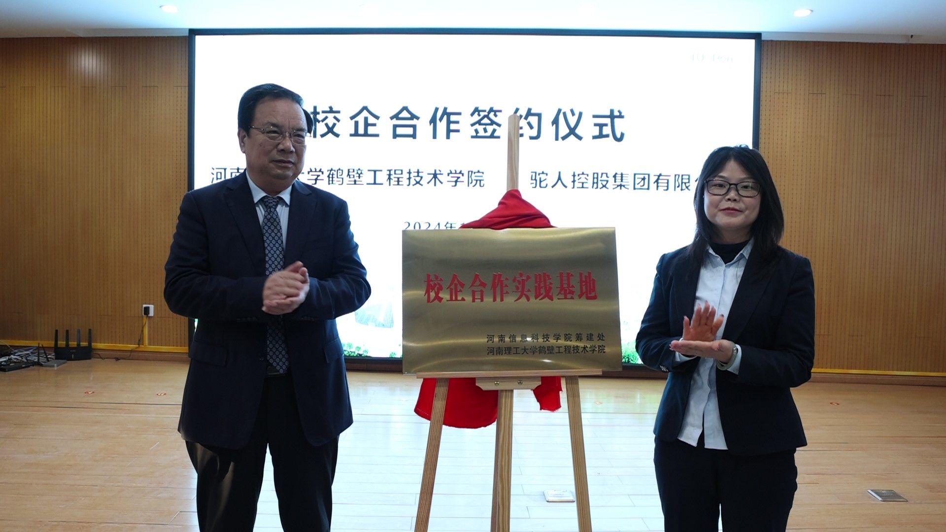 充分交流后,河南理工大学鹤壁工程技术学院分别与驼人控股集团、河南省矿山起重机有限公司签订了校企合作协议,并举行了“校企合作实践基地”授牌仪式。(供稿人:智能制造学院 余梦辉)