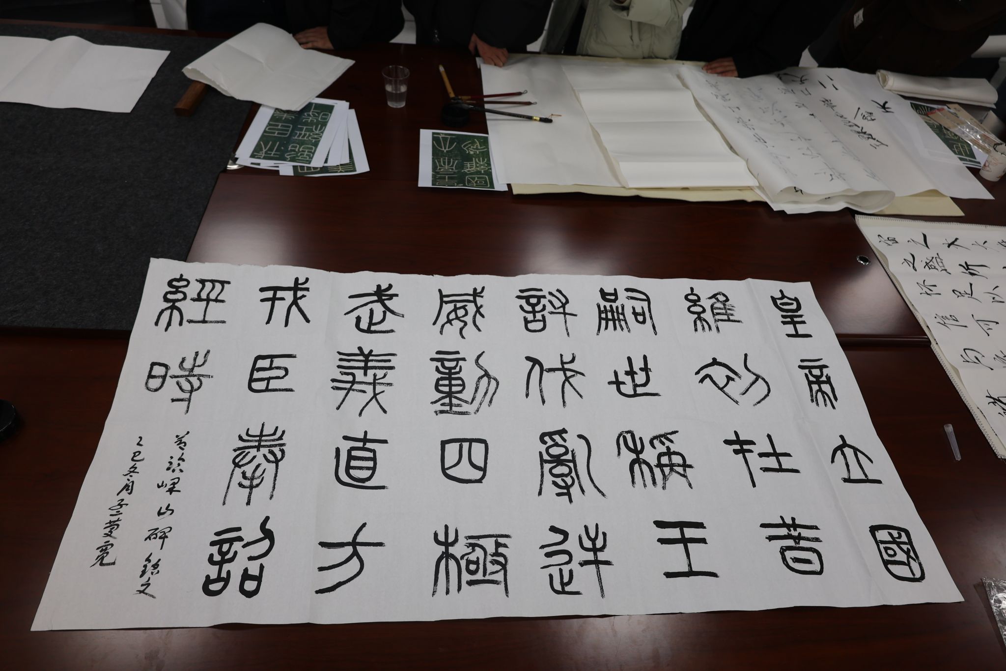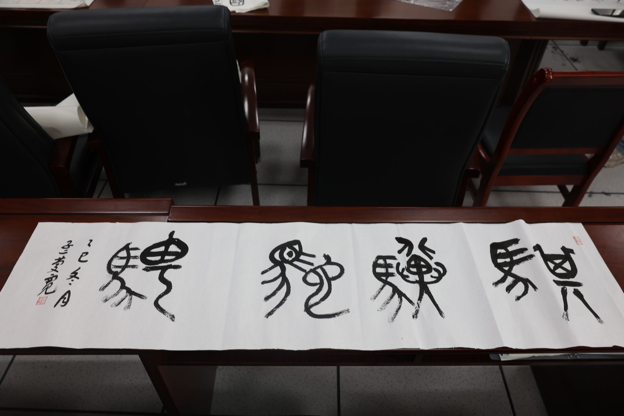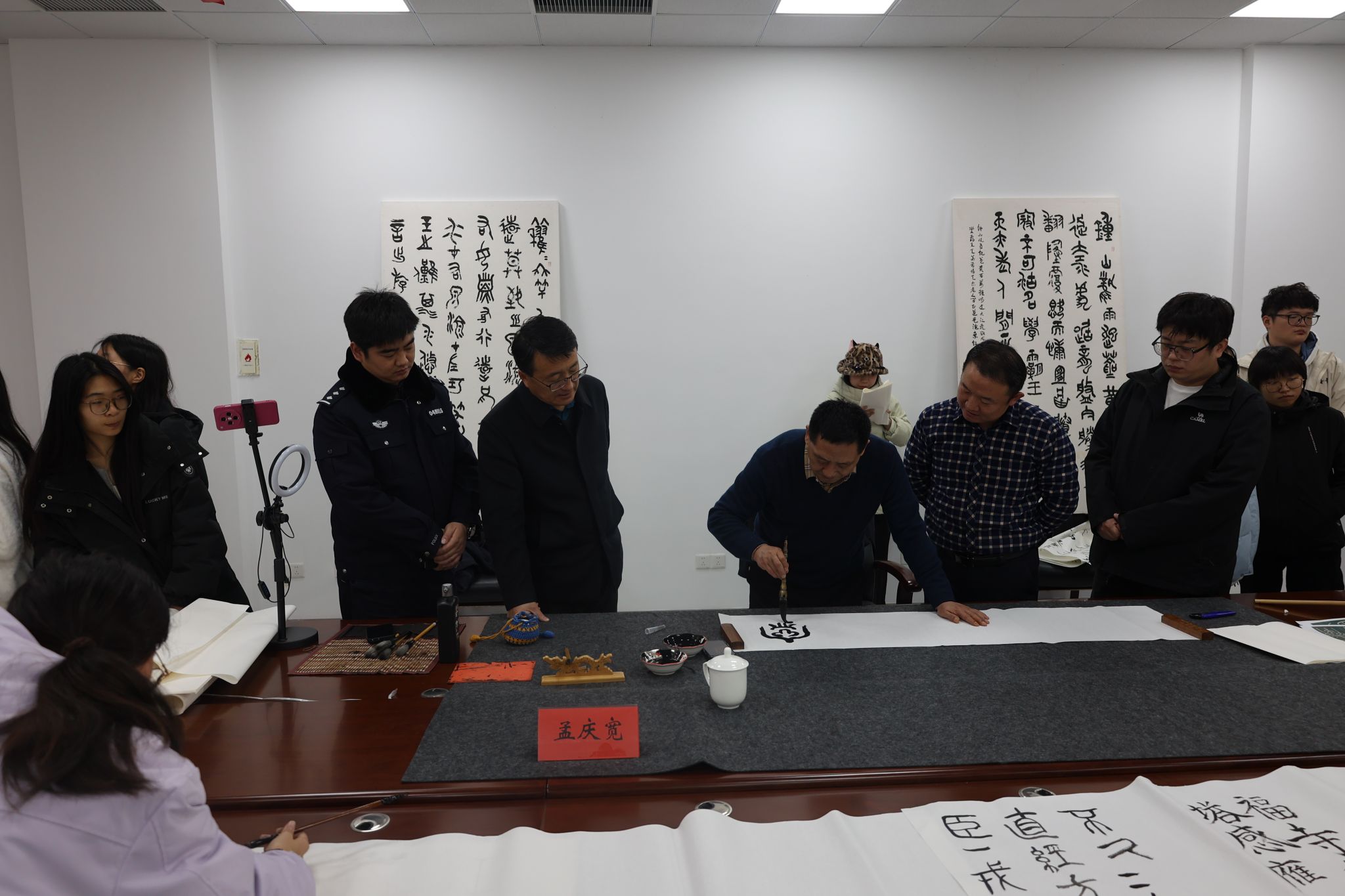活动尾声,孟主席即兴创作多幅书法作品,赠予在场同学留念。每一幅饱含墨香的书法作品,承载着孟主席对同学们的勉励与期许。