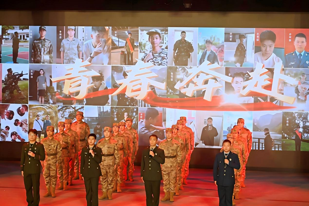 活动现场,由我院20名退役大学生代表组成的“退役学子倡议班”登台发声,以亲身经历为征兵工作注入鲜活力量。“退役学子倡议班”成员身着整洁服装,整齐列队登场,以“青春奔赴”为主题发出铿锵倡议。曾服役于武警新疆总队的周杰龙同学作为宣讲代表,分享了自己的军旅蜕变,深刻诠释了军旅生涯对青年精神品格与素质能力的塑造与提升,引发现场强烈共鸣。