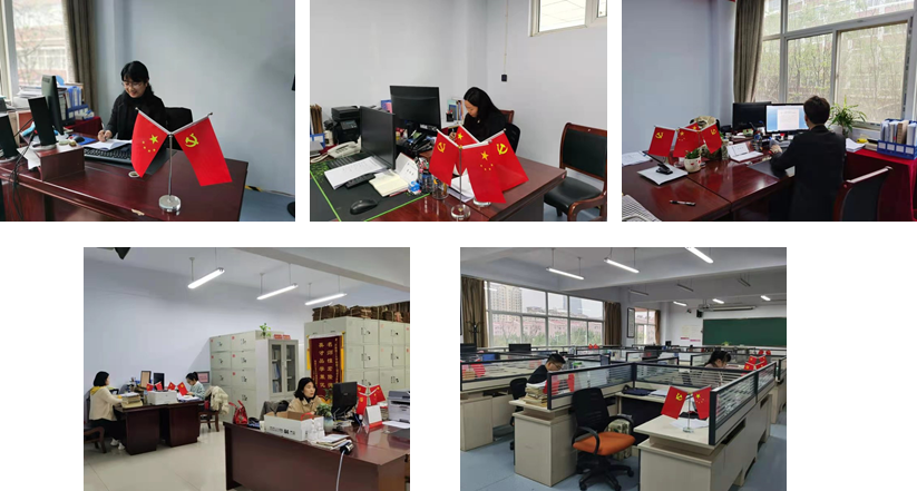 为深入贯彻落实《中共中央办公厅关于庆祝中国共产党成立100周年组织开展“永远跟党走”群众性主题宣传教育活动的通知》有关要求,抓实学院党史学习教育,近日,在学院党委行政的安排下,学院在每个办公室、每张办公桌悬挂党旗国旗,让党旗国旗始终在教育教学一线高高飘扬,引导学院各办公室、各系(部)紧紧围绕学院工作大局、重点任务,奋发进取、攻坚克难,激励和动员全体教师不忘初心、牢记使命,立足本职岗位做贡献,把爱党爱国爱社会主义热情转化为实际行动,为做大做优河南理工大学鹤壁工程技术学院作出积极贡献。