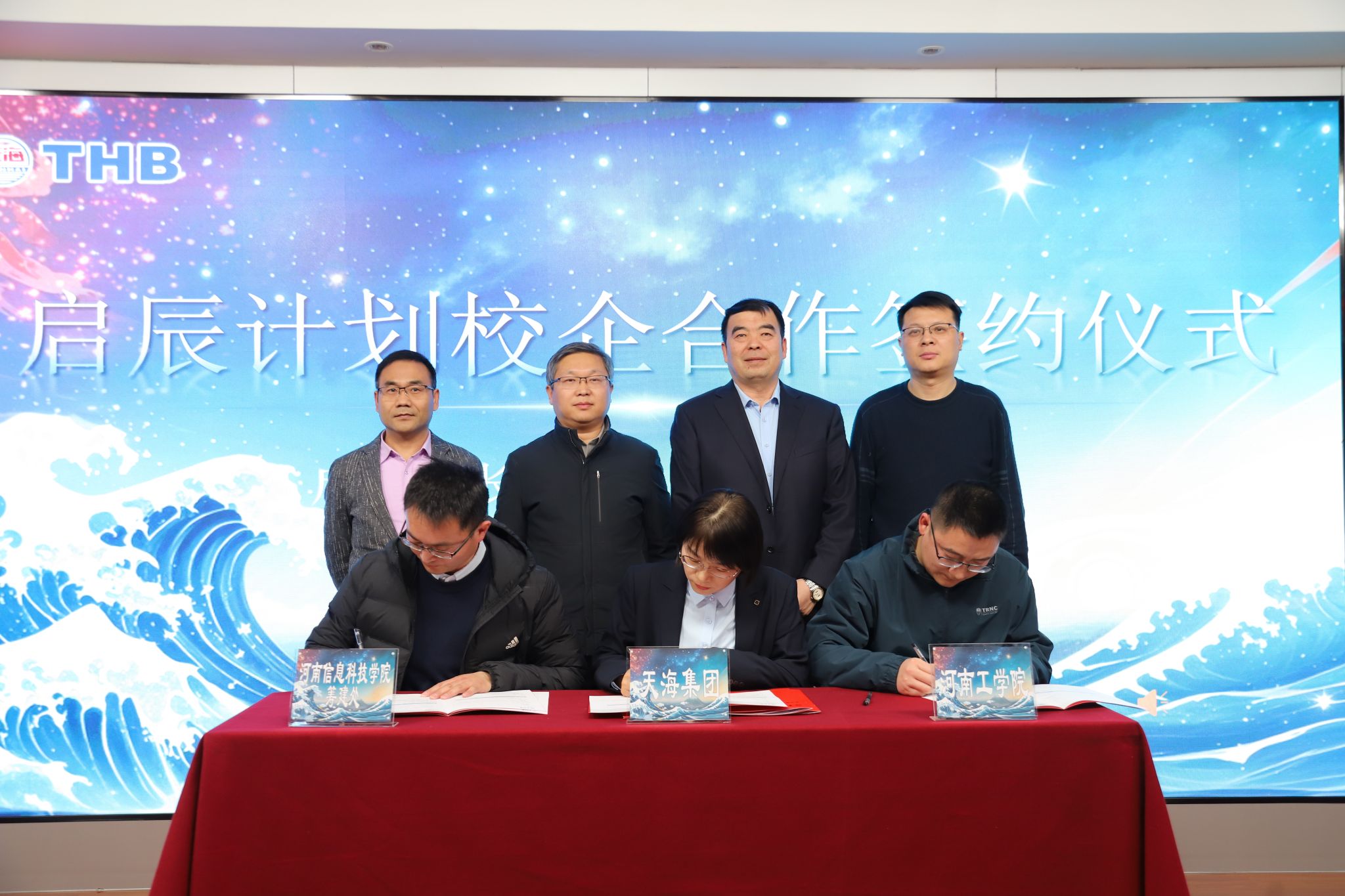 为深化产教融合、创新人才培养模式,3月3日下午,河南理工大学鹤壁工程技术学院与河南天海集团隆重举行校企合作签约仪式。双方将以此次合作为契机,共同探索产学研协同发展新路径,为区域经济高质量发展注入新动能。河南理工大学鹤壁工程技术学院智能制造学院院长李天子,天海集团副总裁刘丰周,以及“启辰计划”运营班全体学员、导师、项目组成员出席此次签约仪式。