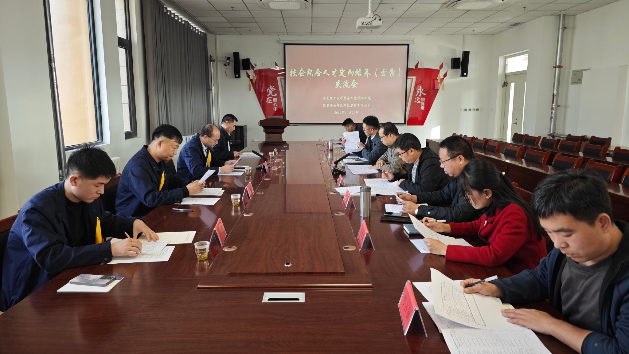 为深度推进我校应用型本科建设,服务鹤壁智能制造产业发展,培育高素质应用型本科人才,10月25日,智能制造学院邀请鹤壁海昌智能科技股份有限公司(以下简称海昌智能公司)总经理武锦涛一行来我院就本科人才培养方案进行交流研讨。副院长蒋庆刚、智能制造学院相关人员参加研讨会。