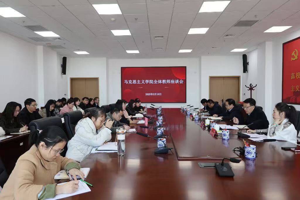 3月18日,筹建处党委委员、副主任、学院党委书记金志广到马克思主义学院组织召开全体教师座谈会。综合部、马克思主义学院负责同志参加。