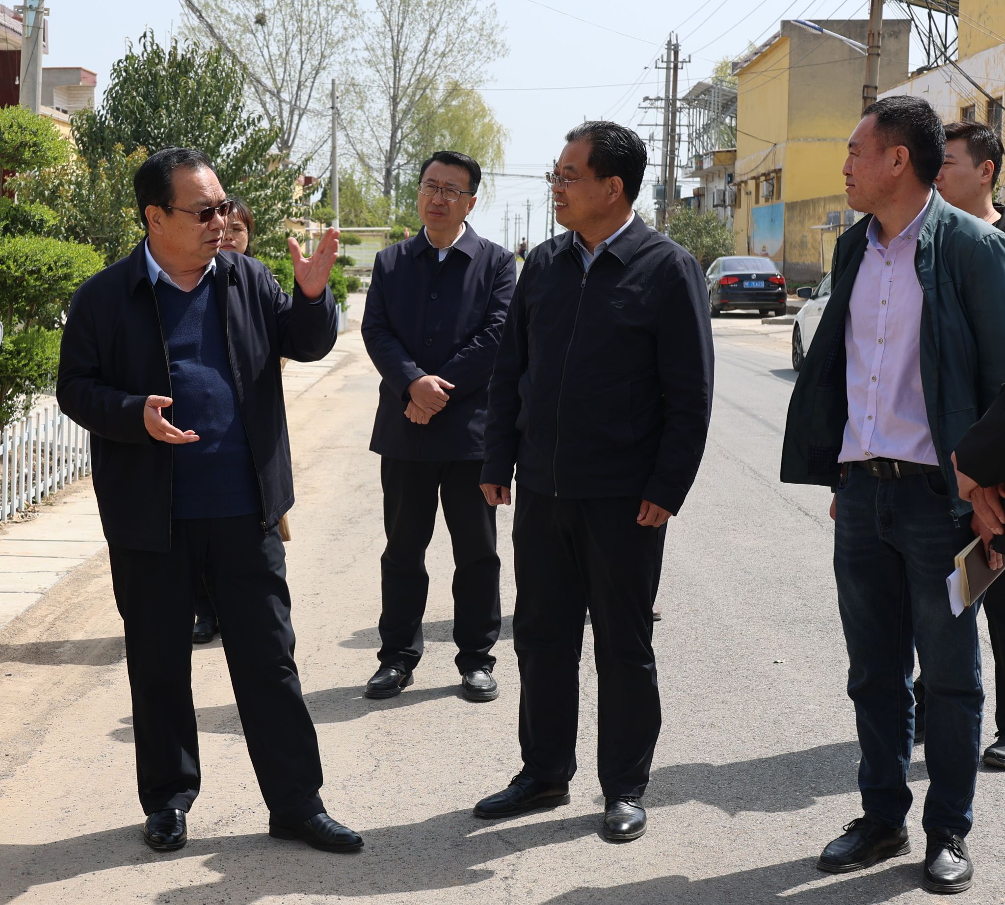 4月3日上午,市二级巡视员、筹建处党委委员、副主任、学院党委书记金志广前往浚县卫贤镇袁香菜村看望筹建处驻村干部并对驻村工作进行调研指导。浚县政协主席朱国旺、秘书长魏志刚,卫贤镇党委书记孙世英等有关负责同志参加活动。