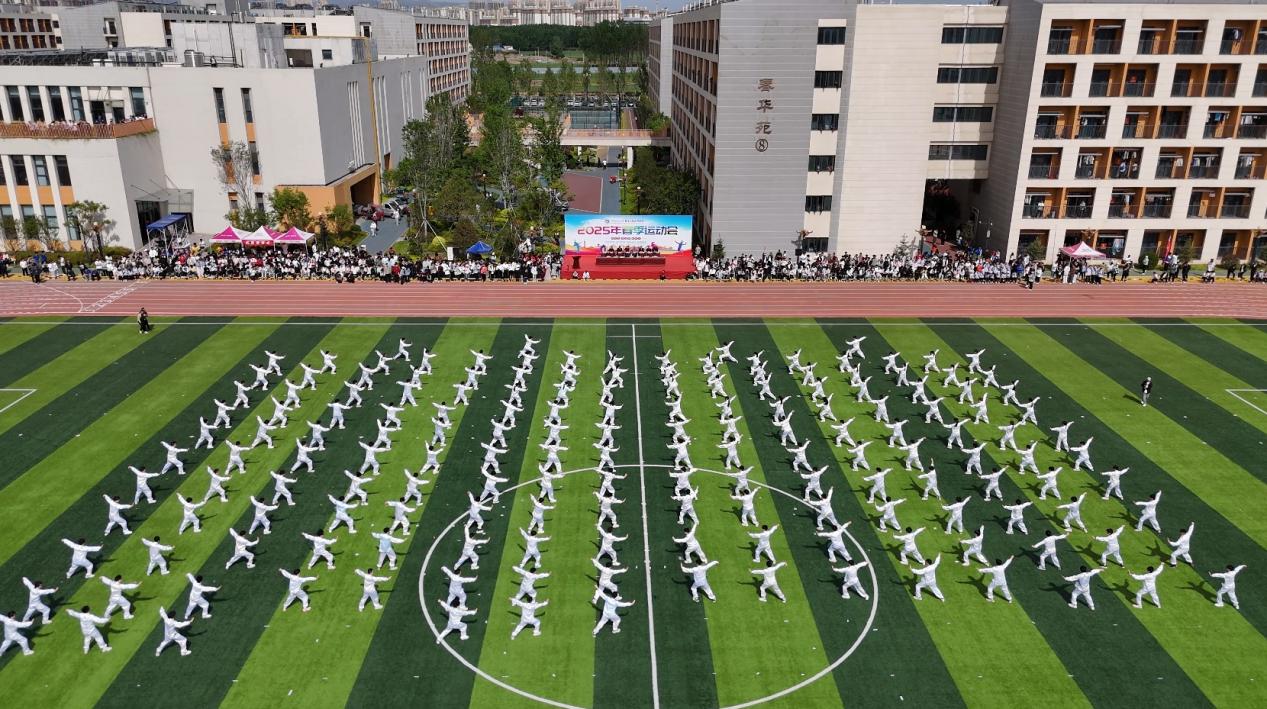 运动员代表、智能制造学院学生张安郑重承诺“遵守规则、尊重对手”;裁判员代表董奇奇老师以“公平裁决、严谨执裁”的誓言回应。随后,一场融合传统与现代的文体表演点燃全场:大型武术太极拳表演刚柔并济,彰显文化自信;团体舞蹈《我爱你中国》将气氛推向高潮。