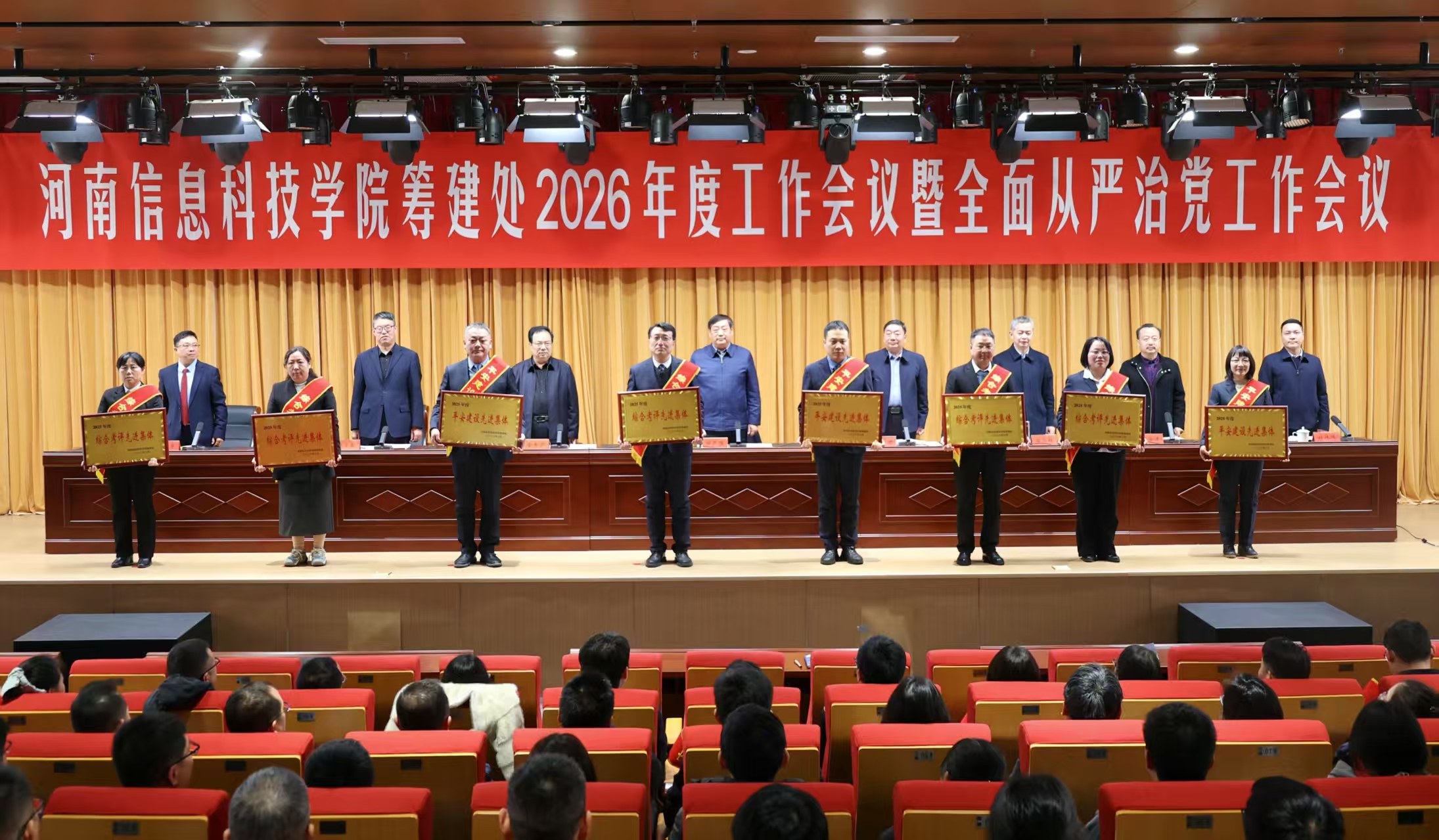 3月17日,河南信息科技学院筹建处2026年度工作会议暨全面从严治党工作会议在公共学习中心一楼报告厅召开。会议回顾总结2025年工作,表彰先进典型,安排部署2026年工作,动员筹建处全体干部职工团结奋进、真抓实干,坚定不移推进全面从严治党向纵深发展,奋力推动学院各项事业取得新突破。市委常委、组织部部长、筹建处党委书记田开胜出席并讲话。市纪委监委派驻市教体局纪检监察组组长赵文昌到会指导。常文君、金志广、谷海红、杜宗才、刘虎、桂伟伟出席会议。