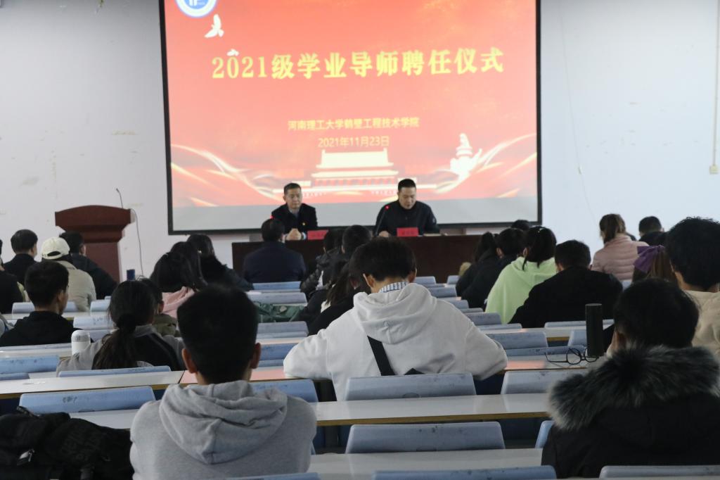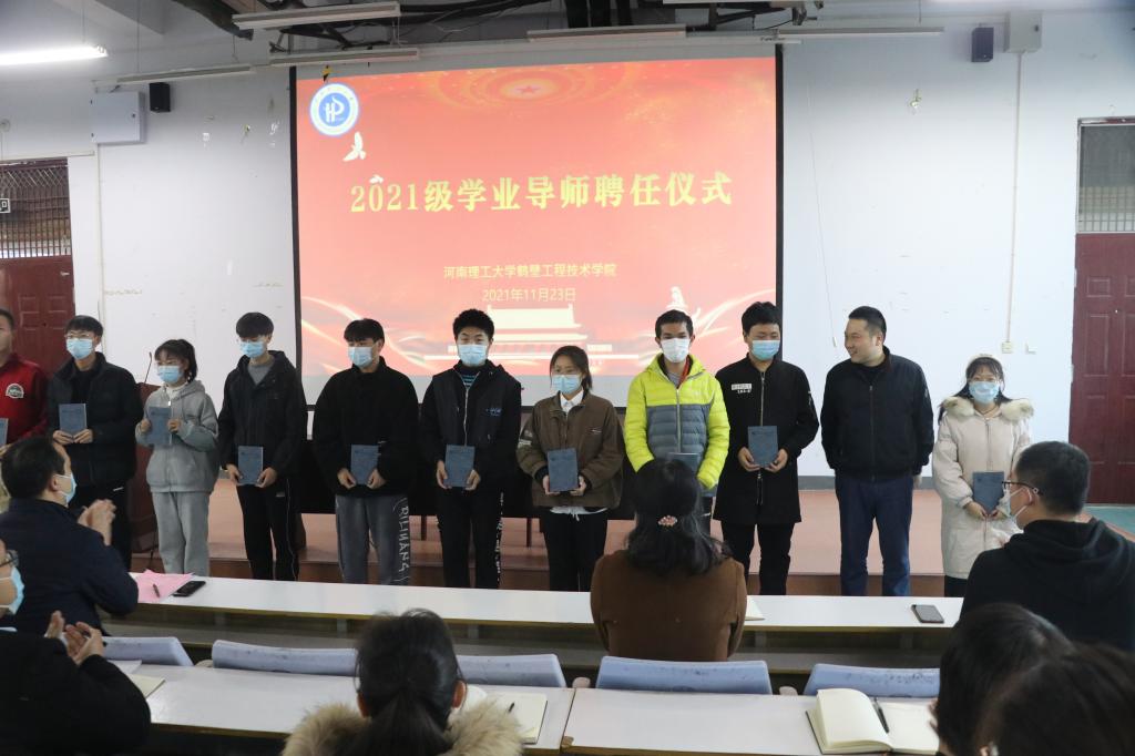 鹤壁工程技术学院自2021级开始,全面推行“辅导员+学业导师”育人模式,此次学业导师的聘任,经过个人申报、学生选择、系(部)推荐和学院审核等环节,最后确定了34名教师为2021级学业导师,他们将通过对学生进行思政教育、学业指导、学术指导、规划指导等方面全面指导,在立德树人和学生学业成长中发挥重要作用。