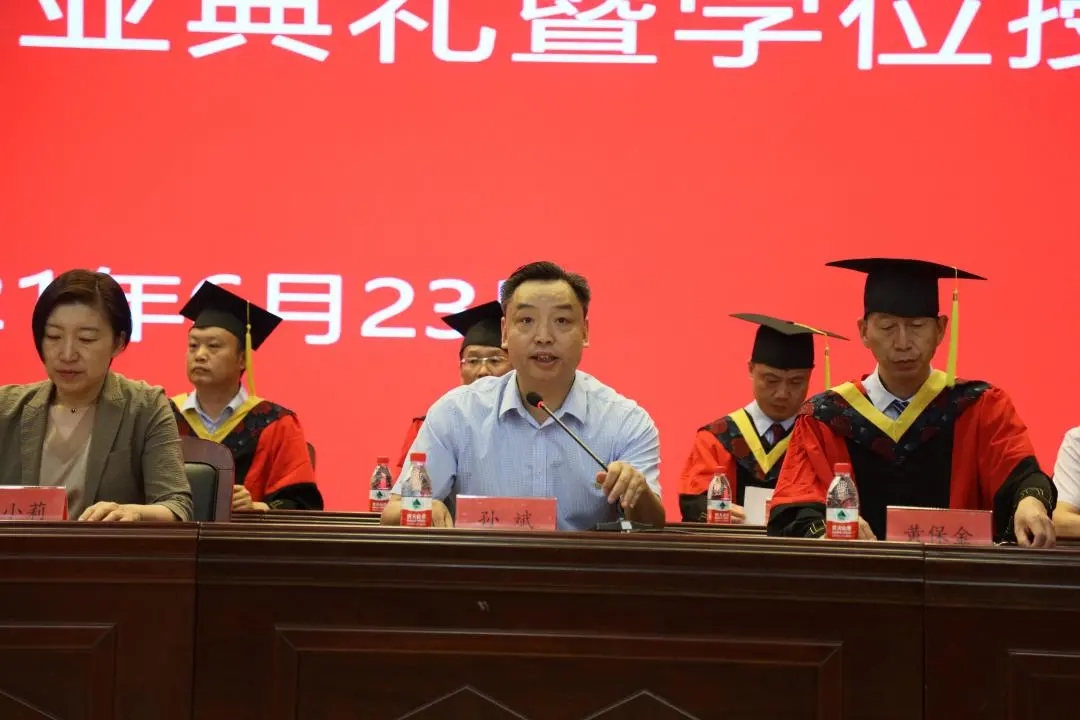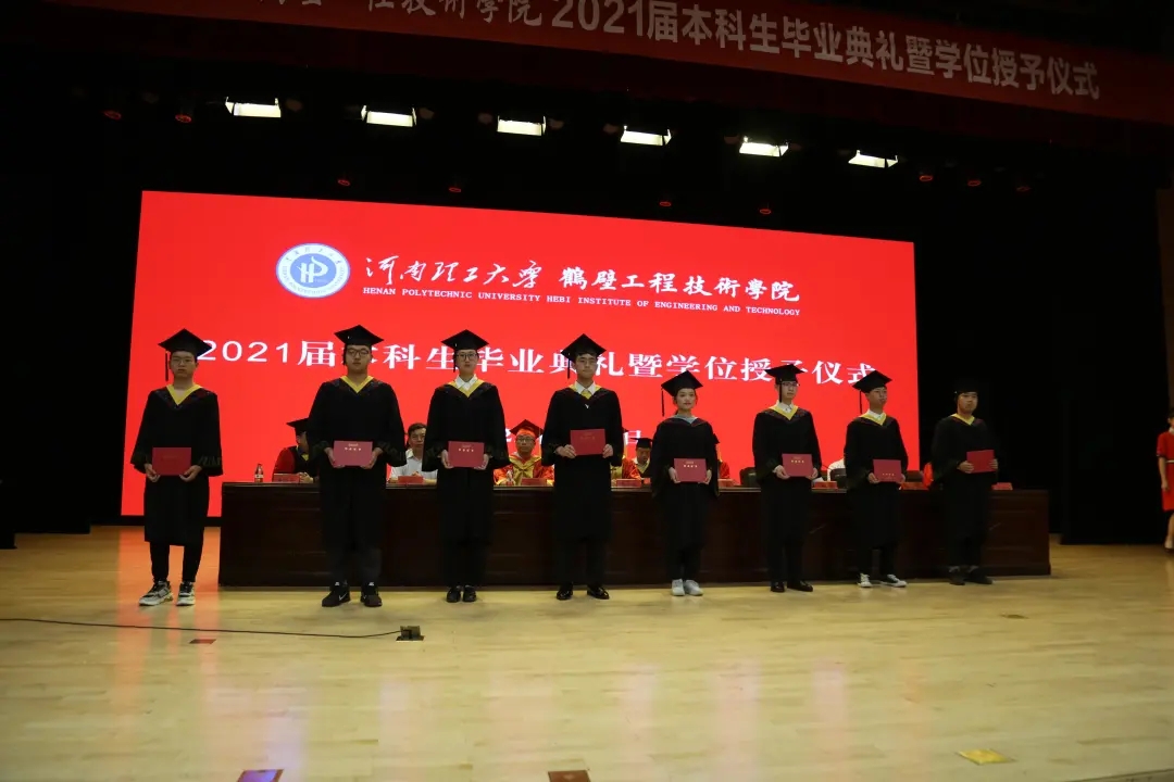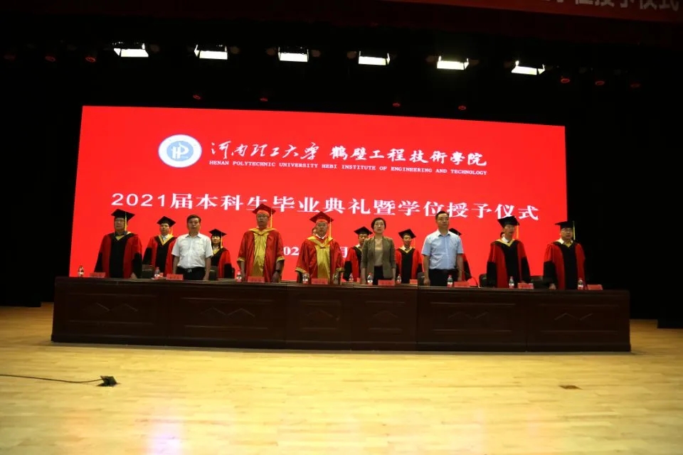 6月23日上午,河南理工大学鹤壁工程技术学院2021届毕业生毕业典礼暨学位授予仪式在学院诚信礼堂举行。河南理工大学校长杨小林、副校长沈记全,鹤壁市副市长李小莉、鹤壁市政府副秘书长李忠生,河南理工大学鹤壁工程技术学院党委书记孙斌、院长蔡太生出席,河南理工大学有关处室、院系负责同志,鹤壁工程技术学院2021届毕业生及师生代表参加。孙斌主持。