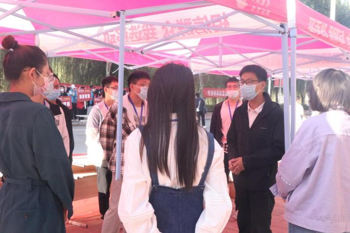 珍视每一寸光阴,不负春光,不负韶华。学生工作办公室主任孙勇,新生辅导员邢树冬、康智慧、陈兰,学生工作办公室全体老师在核酸检测处、专业报到处,查看新生报到情况。疏导报到的同学们,调派志愿者,现场井然有序。