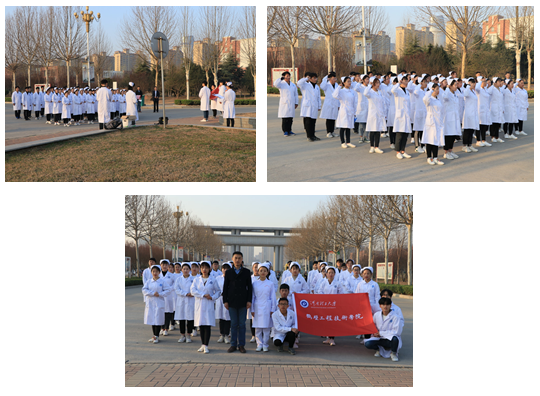 3月19日清晨,鹤壁工程技术学院举办以“天之职,永保白衣天使之圣洁”为主题的国旗下宣誓活动。护理学专业师生参加了活动。学院副书记、副院长谷海红出席。