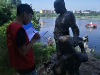 在炎热的天气下,同学们发扬不怕苦、不怕累的精神,捡拾垃圾,向市民们讲解测量的结果,劝说减少或禁止捕捞鱼类,为淇河周围的生态环境尽一份力量。