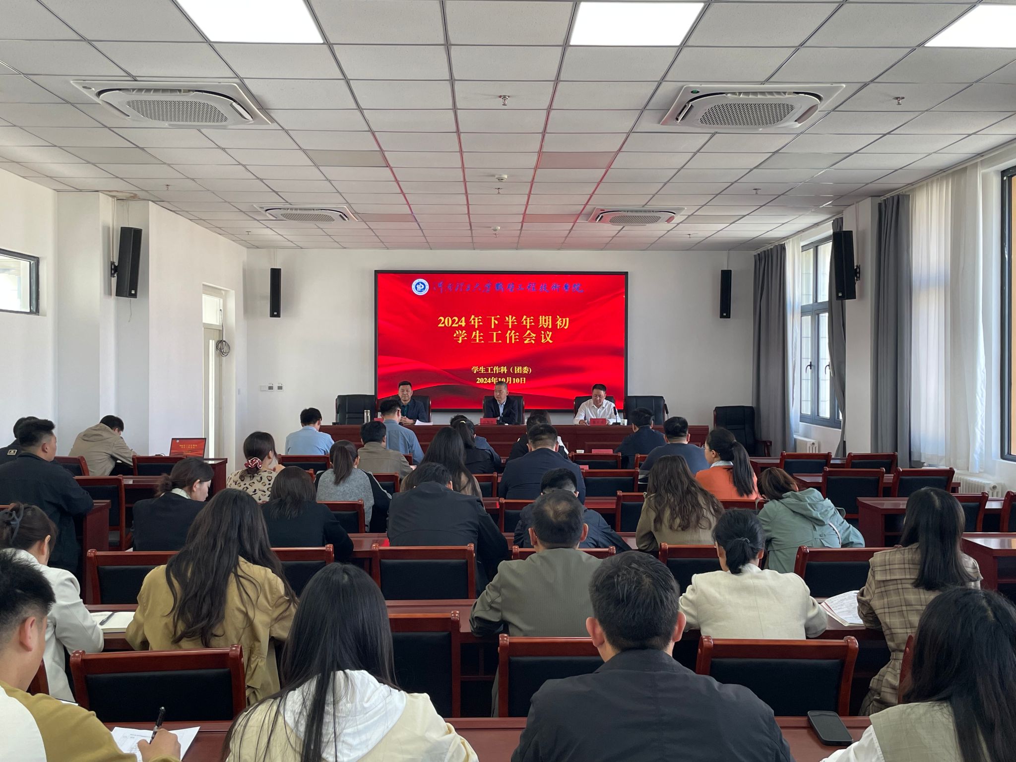 10月10日下午,河南理工大学鹤壁工程技术学院2024-2025学年第一学期期初学生管理工作会议在明德楼520会议室召开。学院党委副书记、院长谷海红出席并讲话,党委委员、副院长张百重,学工科(团委)成员、各二级学院党总支副书记、学工助理、全体专兼职辅导员参加会议。