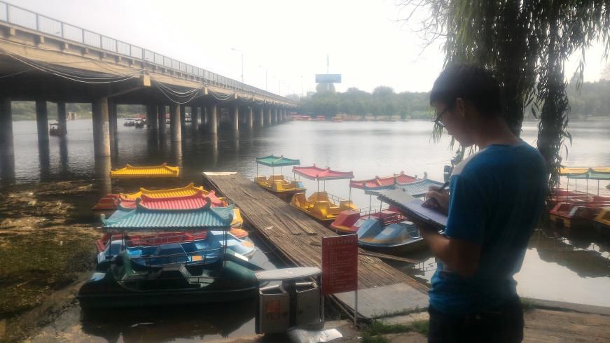 在炎热的天气下,同学们发扬不怕苦、不怕累的精神,捡拾垃圾,向市民们讲解测量的结果,劝说减少或禁止捕捞鱼类,为淇河周围的生态环境尽一份力量。