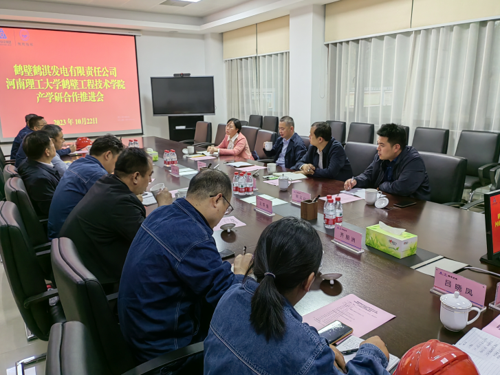 为推动产学研协同创新,寻求校企合作共赢、共谋发展的良好局面,10月22日下午,河南理工大学鹤壁工程技术学院院长谷海红带领团队赴鹤壁鹤淇发电有限责任公司进行校企合作座谈。河南豫能控股股份有限公司副总经理茹启明、鹤壁鹤淇发电有限责任公司副总经理郭文忠、副总经理张中州及部分中层干部代表参加了座谈会,座谈会由茹启明主持。